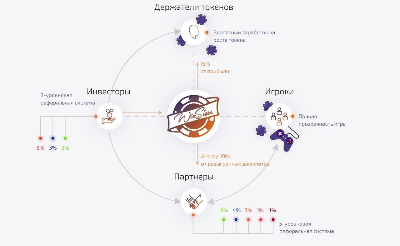 Il team Winstars ritiene che il sistema a blocchi possa risolvere questo problema. La piattaforma decentralizzata, contenente un catalogo di giochi d'azzardo online, basato su Ethereum, fornirà la dovuta trasparenza, in quanto consentirà di controllare tutte le scommesse fatte e il gioco giocato. E anche se la partecipazione diretta ai giochi diventerà anche una delle forme di guadagno, non è di gran lunga la sola opportunità di partecipare proficuamente al progetto.