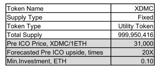 BTC accepte, ETH, LTC, ZCash, Waves Pour trouver le jeton DEX vague XDMC, utilisez l'ID suivant: 4FYCdmcgqxF4HgMDhNmxj3xQ7iXTog WpRBg2cUUMqnn1 XDMC Le prix spécial est 31.000 XDMC Pré ICO / 1 ETH L'investissement minimum est de 0,1 ETH.